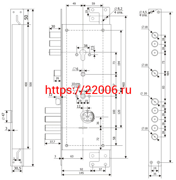 - Замок Guardian (Гардиан) врезной двухсистемный ЗВ 25.14 Т (прав) с тягами (без накл), 5+1 кл (длин. кл. 54мм) /123:454/ в Воронеже недорого