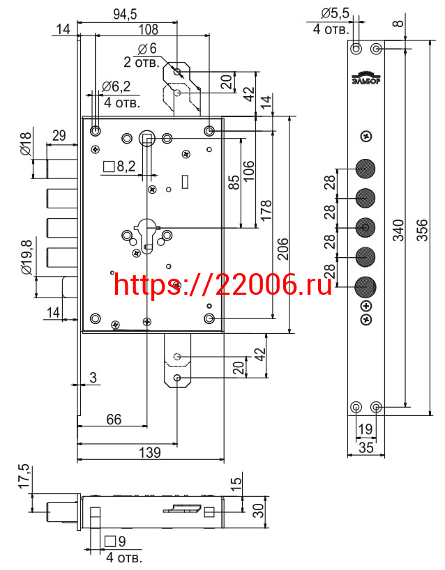 - Корпус Elbor (Эльбор) врезного замка с защёлкой Рубин 1.08.21 с тягами /56152/ в Воронеже недорого
