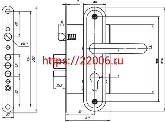 - Замок Zenit (Зенит) врезной цилиндровый с защёлкой в комплекте с ручкой ЗВ4.009/17 (медь), 4 кл. в Воронеже недорого