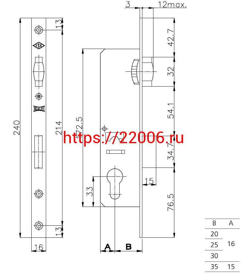 - Корпус Kale kilit (Кале килит) узкопрофильного замка с роликовой защёлкой 155/P (35 mm) w/b (хром) (без отв. планки) в Воронеже недорого