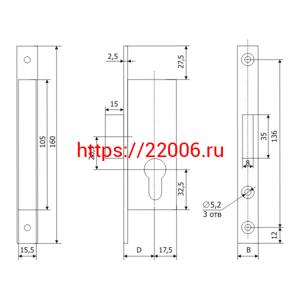 - Корпус Guardian (Гардиан) узкопрофильного замка PROFI 35.01.16 /123:0241/ в Воронеже недорого