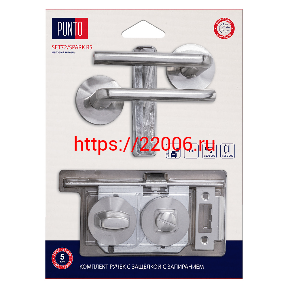 - Комплект ручек Punto (Пунто) с защелкой без запирания LM/A SET45R.RS52.SPARK/HD SN-3 матовый никель в Воронеже недорого