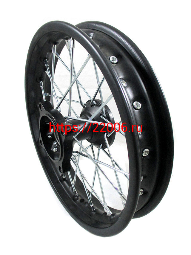 - Диск колеса передний стальной на спицах 1.40 - 12" цвет черный, дисковый тормоз ось 15мм Питбайк в Воронеже недорого