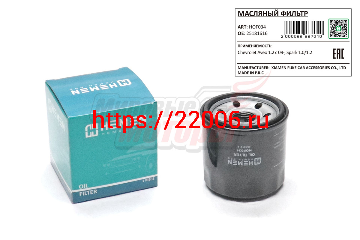 - Фильтр масляный Chevrolet Aveo 1.2 c 09-, Spark 1.0/1.2 (HOF034) в Воронеже недорого