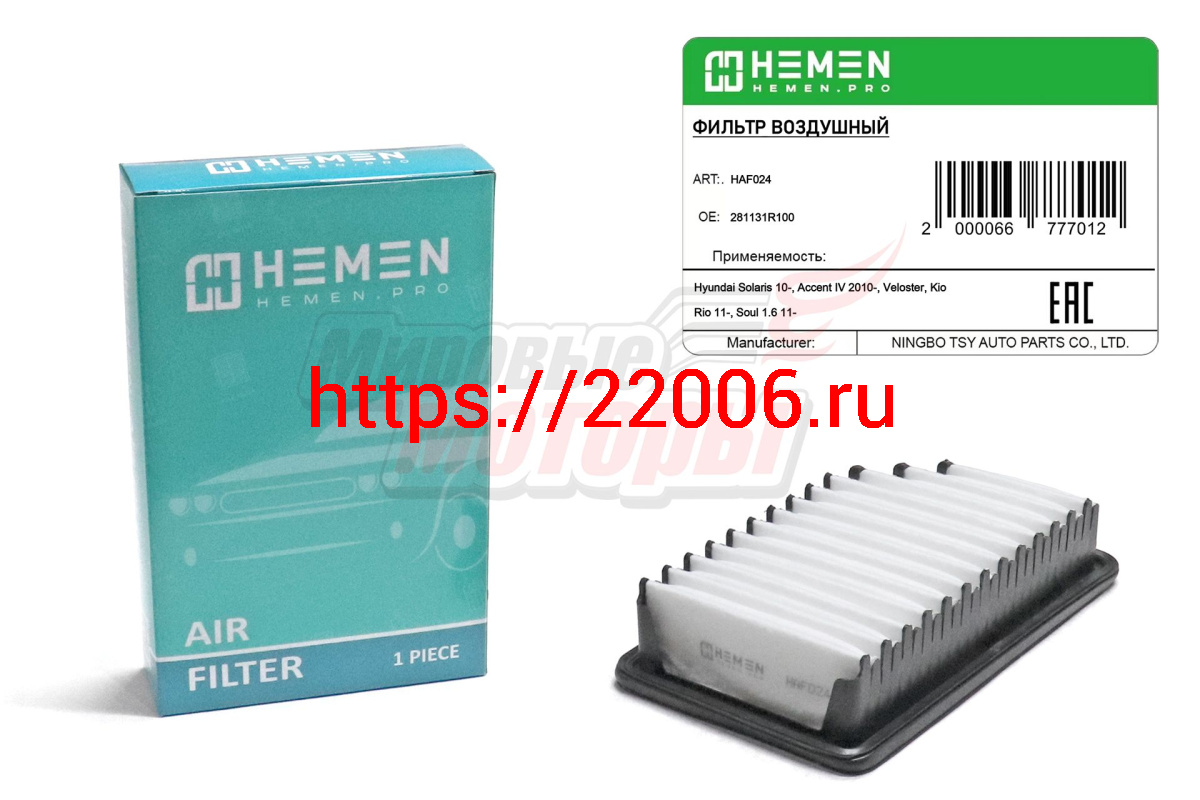 - Фильтр воздушный Hyundai Solaris 10-, Accent IV 2010-, Veloster, Kia Rio 11-, Soul 1.6 11- (HAF024) в Воронеже недорого