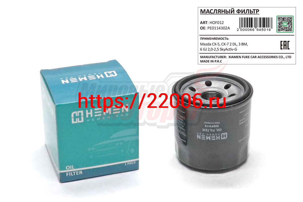 - Фильтр масляный Mazda CX-5, CX-7 2 DL, 3 BM, 6 GJ 2,0-2,5 SkyActiv-G (HOF012) в Воронеже недорого