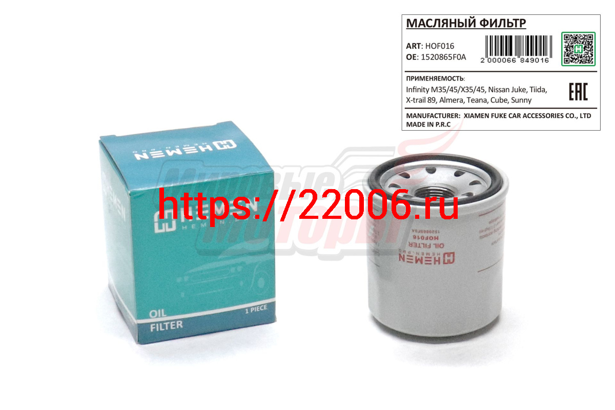 - Фильтр масляный Infinity M35/45/X35/45, Nissan Juke, Tiida, X-trail 89, Almera, Teana, Cube (HOF016) в Воронеже недорого