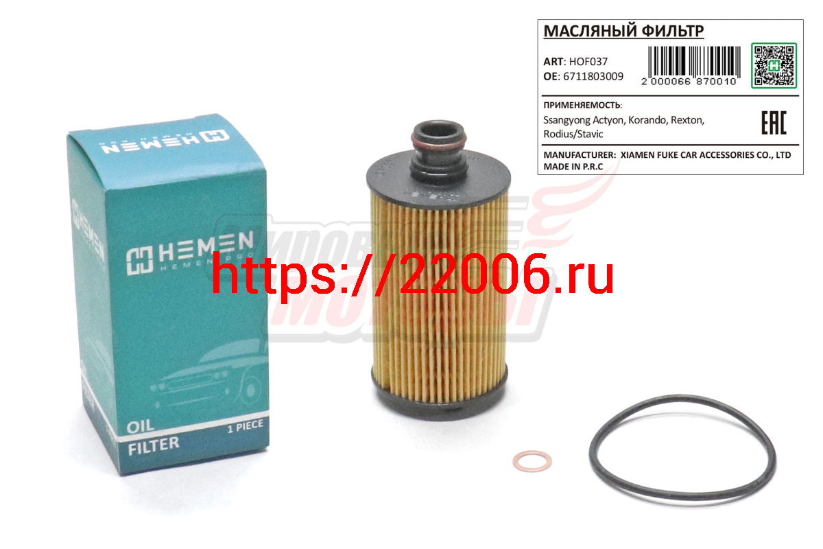 - Фильтр масляный Ssangyong Actyon,Korando,Rexton,Rodius/Stavic (HOF037) в Воронеже недорого