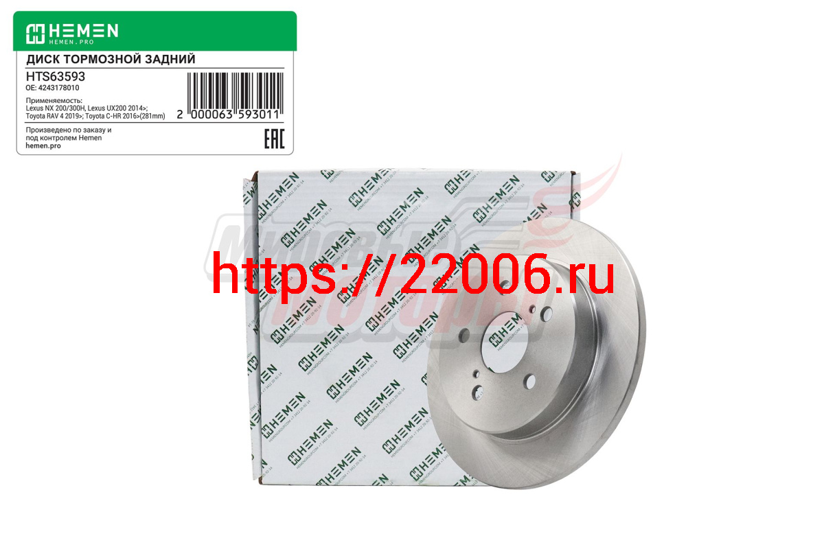 - Диск тормозной задний LEXUS NX200, UX200, TOYOTA С-HR 16-, RAV4 V XA50 18-, диам. 281 (HTS63593) в Воронеже недорого