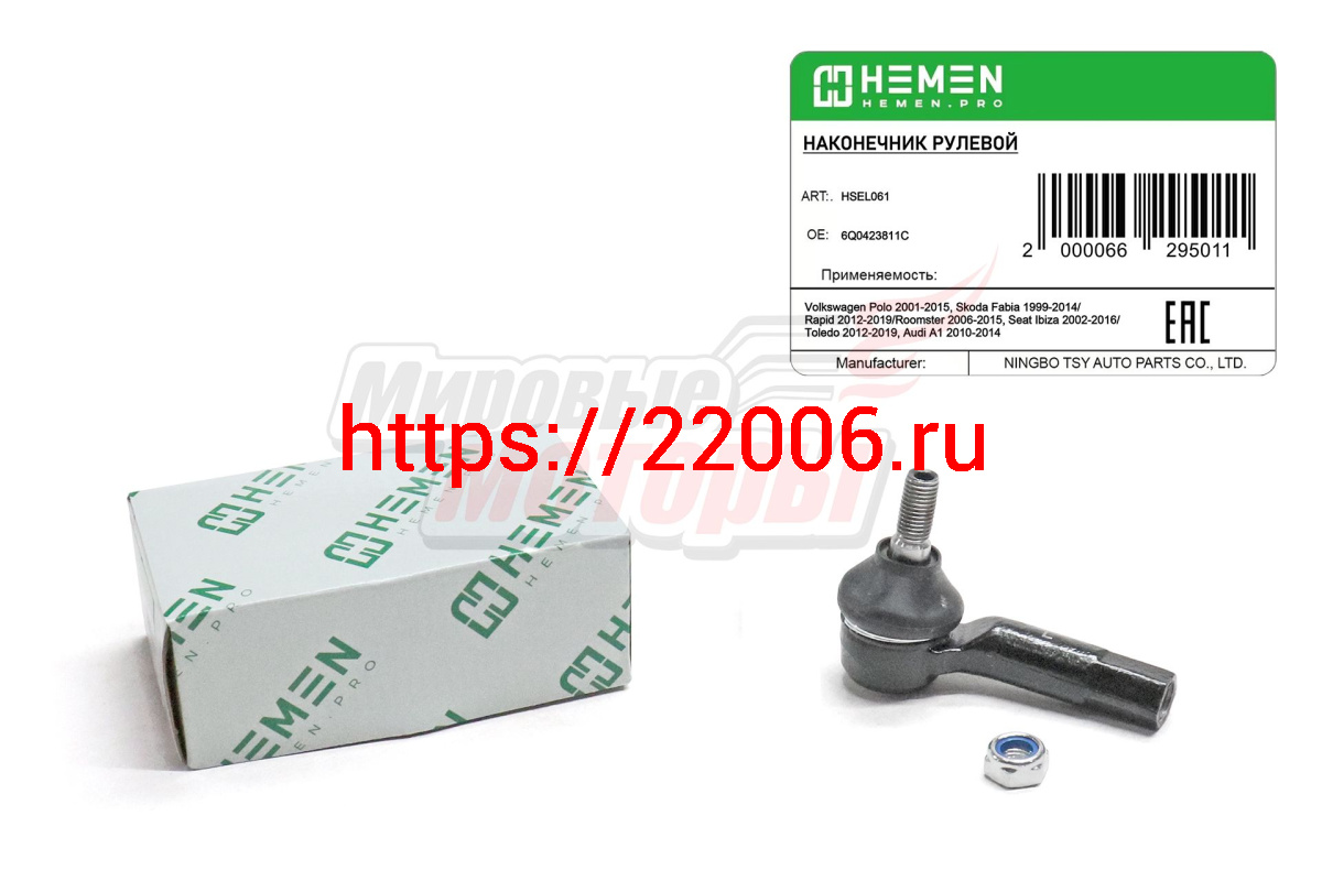 - Наконечник рулевой левый Volkswagen Polo 01-, Skoda Fabia 99-, Rapid 12-, Seat Ibiza 02- (HSEL061) в Воронеже недорого