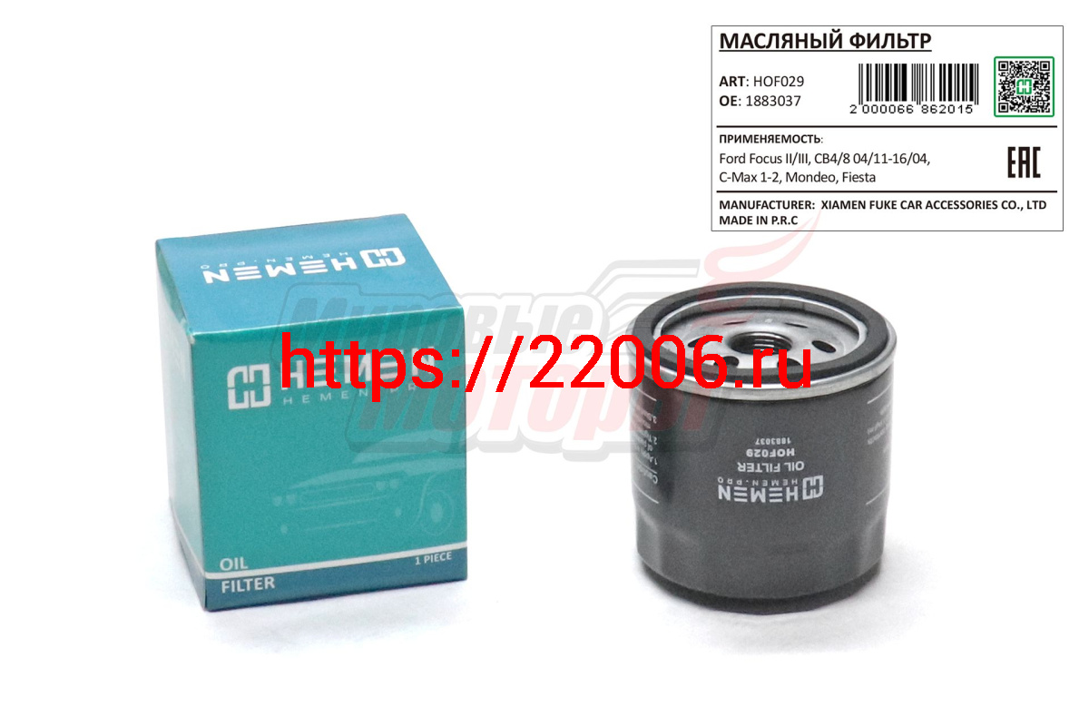 - Фильтр масляный Ford Focus II/III, CB4/8 04/11-16/04, C-Max 1-2, Mondeo, Fiesta (HOF029) в Воронеже недорого