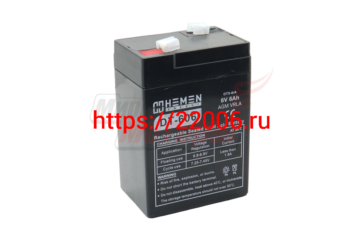 - Аккумулятор герметичный 6В 6Aч HEMEN ENERGY DT606(OT5-6/A)(70x48x100mm)(электромашинки) в Воронеже недорого