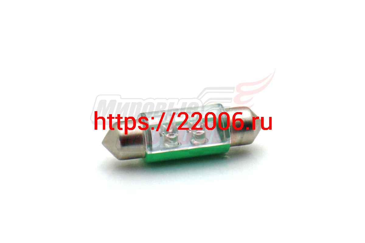 - Лампа 12 В T11х36, 4 светодиода LED 3 мм, двухцокольная, подсветки, зелёная в Воронеже недорого