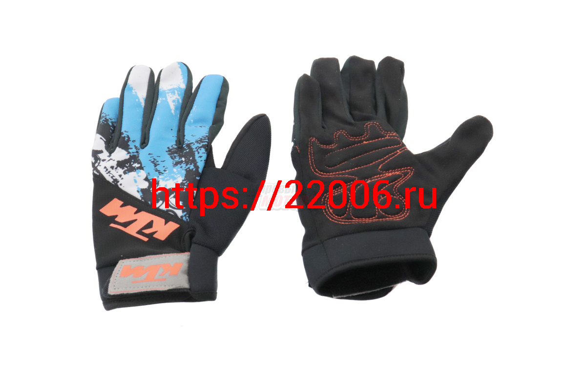 - Перчатки мото KTM (тыльн.часть-износост.дыш.ткань,ладонь-износостойк.ткань) бело-синий рисунок, L в Воронеже недорого