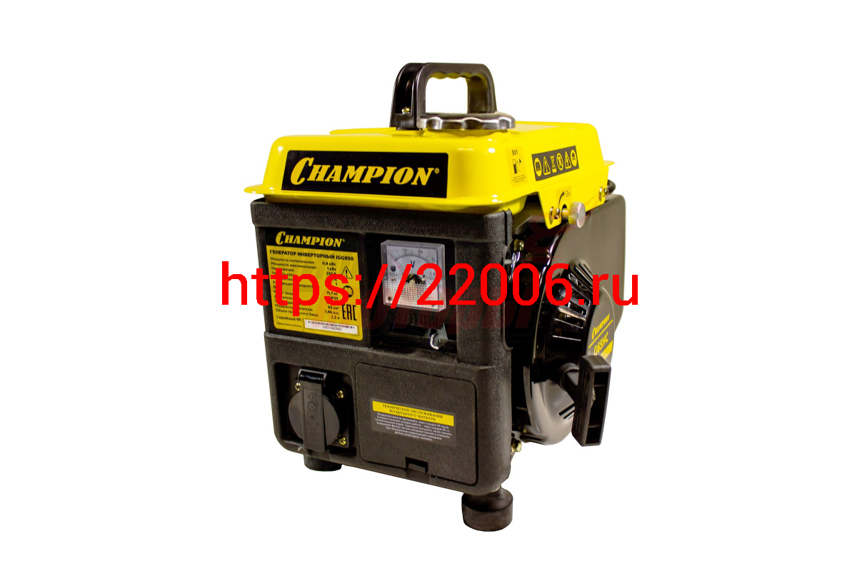 - Генератор бенз "CHAMPION" IGG950 инверторный (0,8/0,9кВт, 1,86лс, 2-хтактн. 2,2л 11,7кг 1.37л/ч 12V) в Воронеже недорого