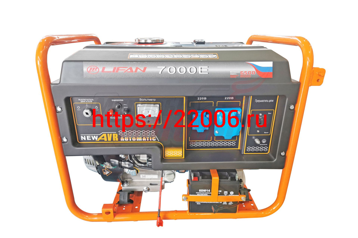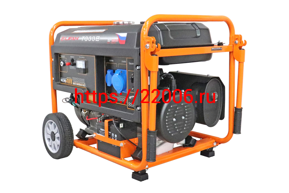 - Генератор бенз. "LIFAN" 6GF-4(LF7000Е)(ном.6кВт,макc.6,5кВт, 4т.,15л.с.,бак 25л.,электростартер, медн.обм.альтернатора, AVR, жк табло, колеса, АКБ) в Воронеже недорого