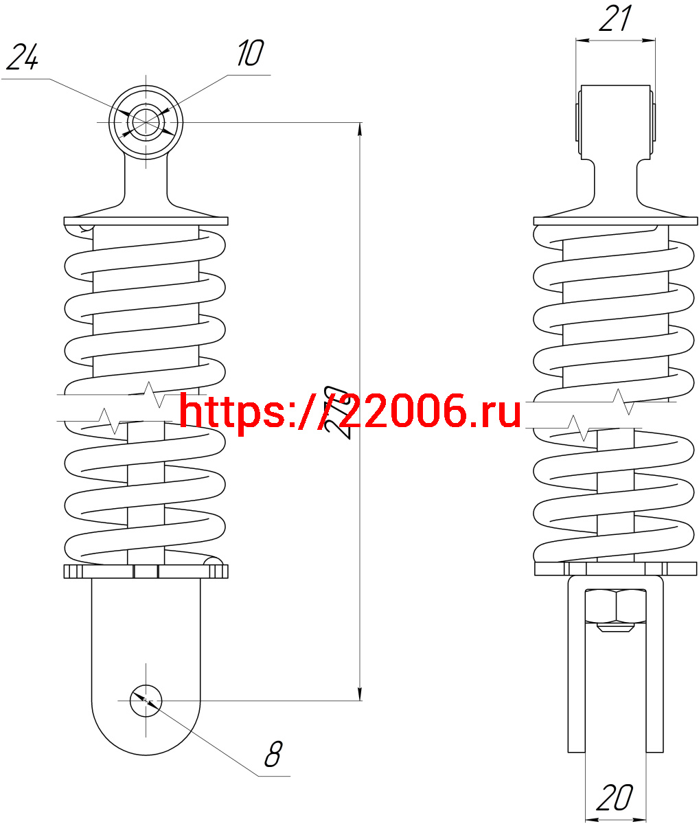 - Амортизатор зад. L-270, D1-24, d1-10, H1-21, d2-8, H2-20 FT50QT в Воронеже недорого