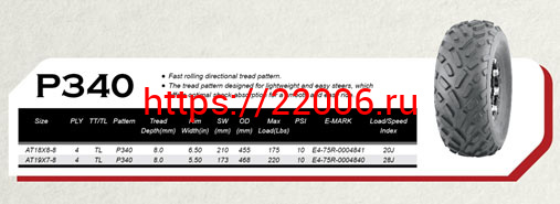 - Покрышка ATV 8" 18 х 8.00 - 8 (Р340) без камеры, WANDA в Воронеже недорого