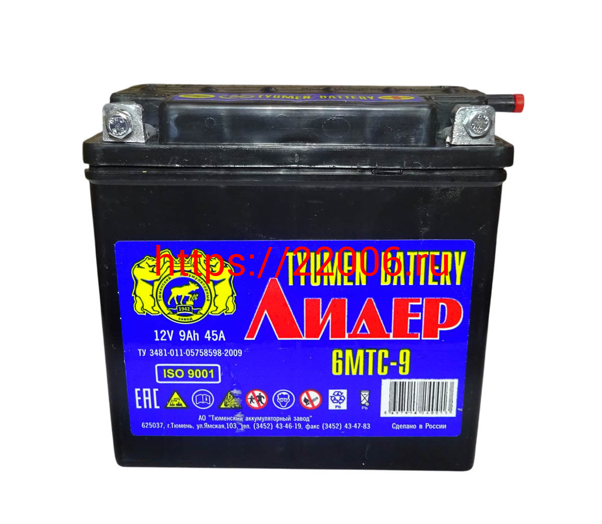 - Аккумулятор 12В 9 А/ч, г.Тюмень Лидер (6МТС-9) под болт(140х75х135) обрат. пол., Кислот. Сухозарядж в Воронеже недорого