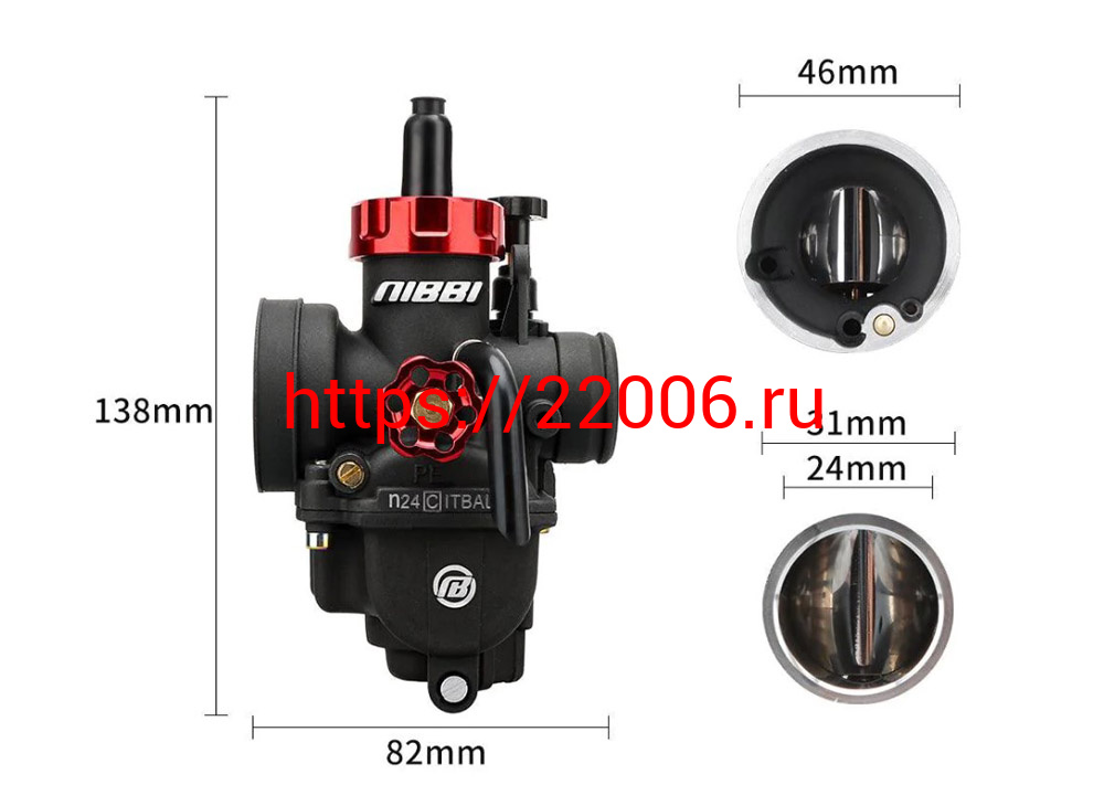 - Карбюратор NIBBI Racing PE24 (YJ), реком.двиг. 50-125 см3 (вход/выход 24 и 46 мм) в Воронеже недорого