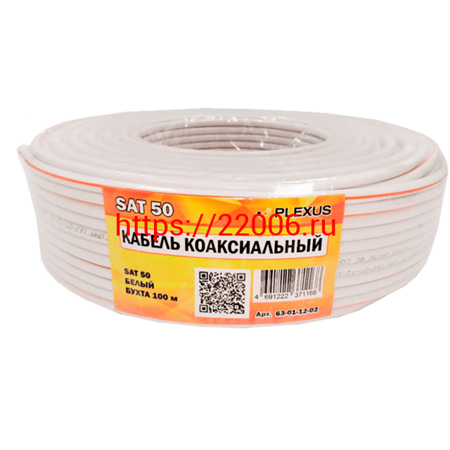 - PLEXUS RG-6 SAT 50 Медь 64% белый: Кабель коаксиальный 75 Ом, 100 м (100/600) в Воронеже недорого