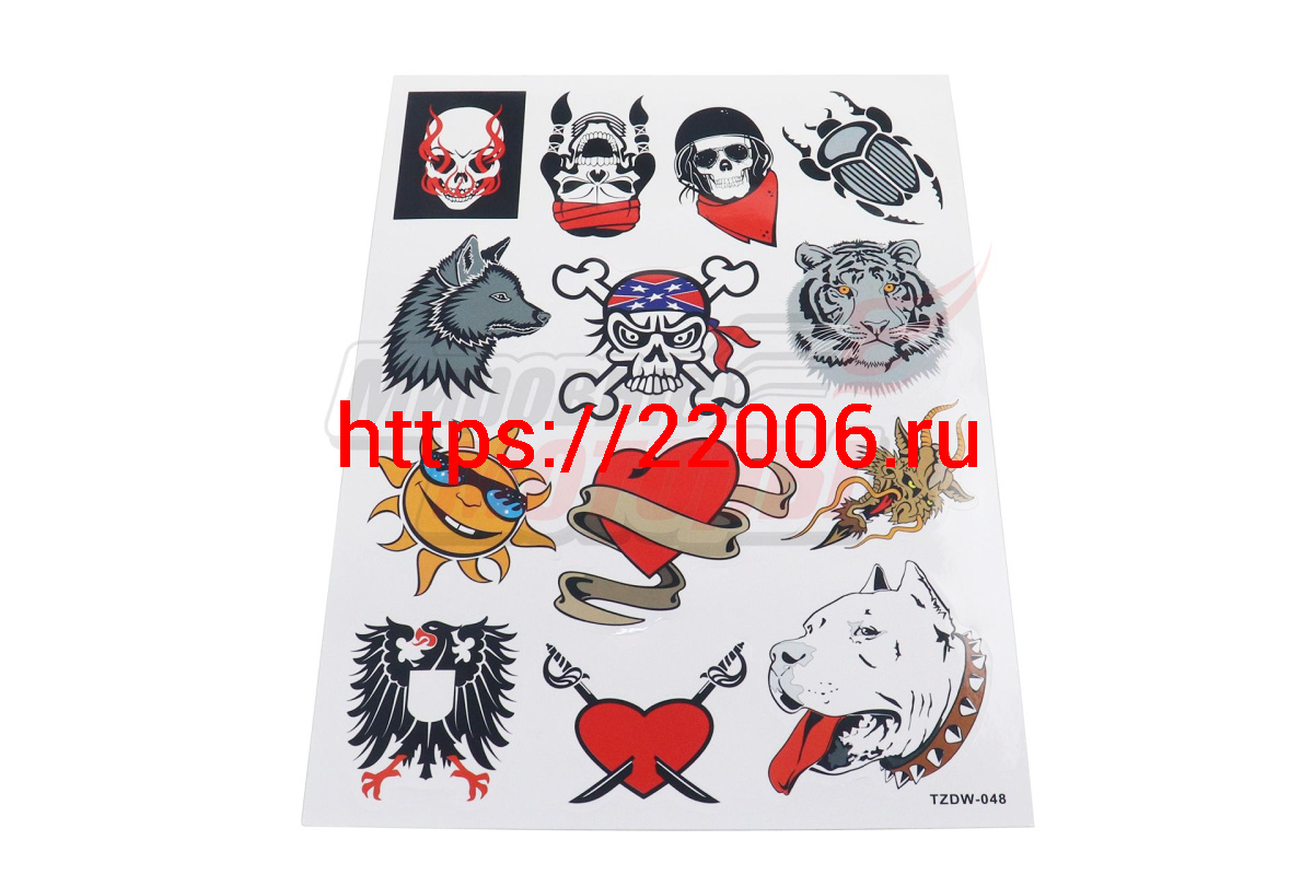 - Наклейки: черепа, волк, тигр, сердце и др. MV22A4D048 (13 элементов)(21х30) в Воронеже недорого